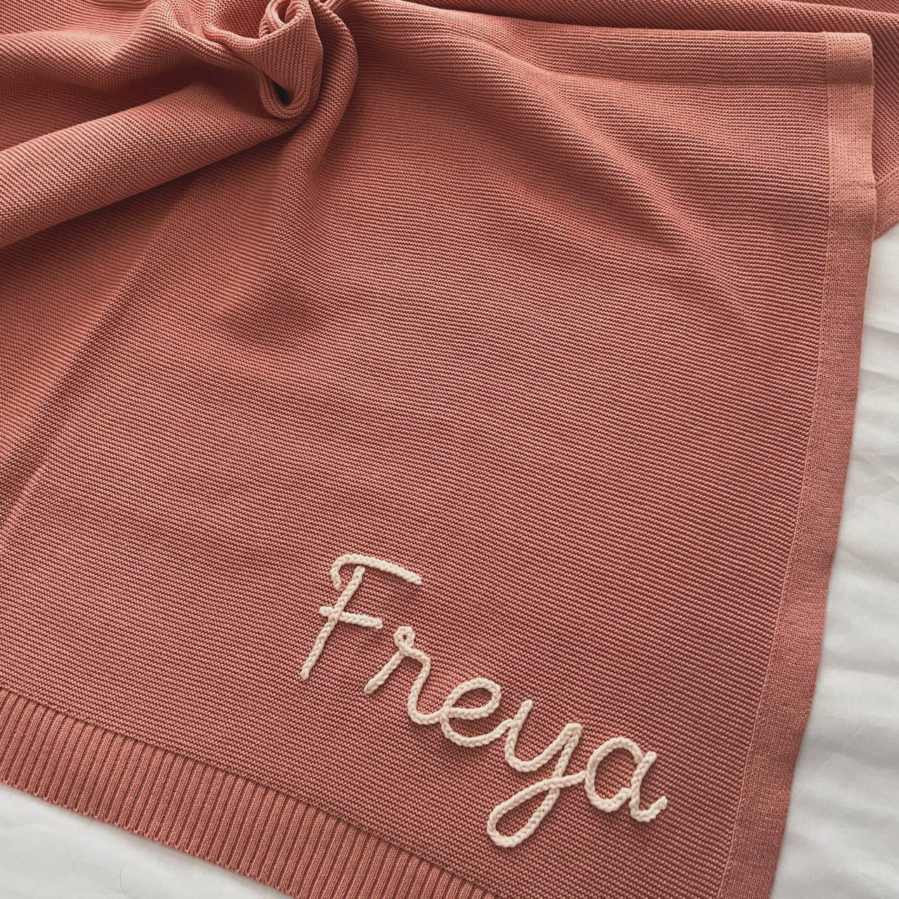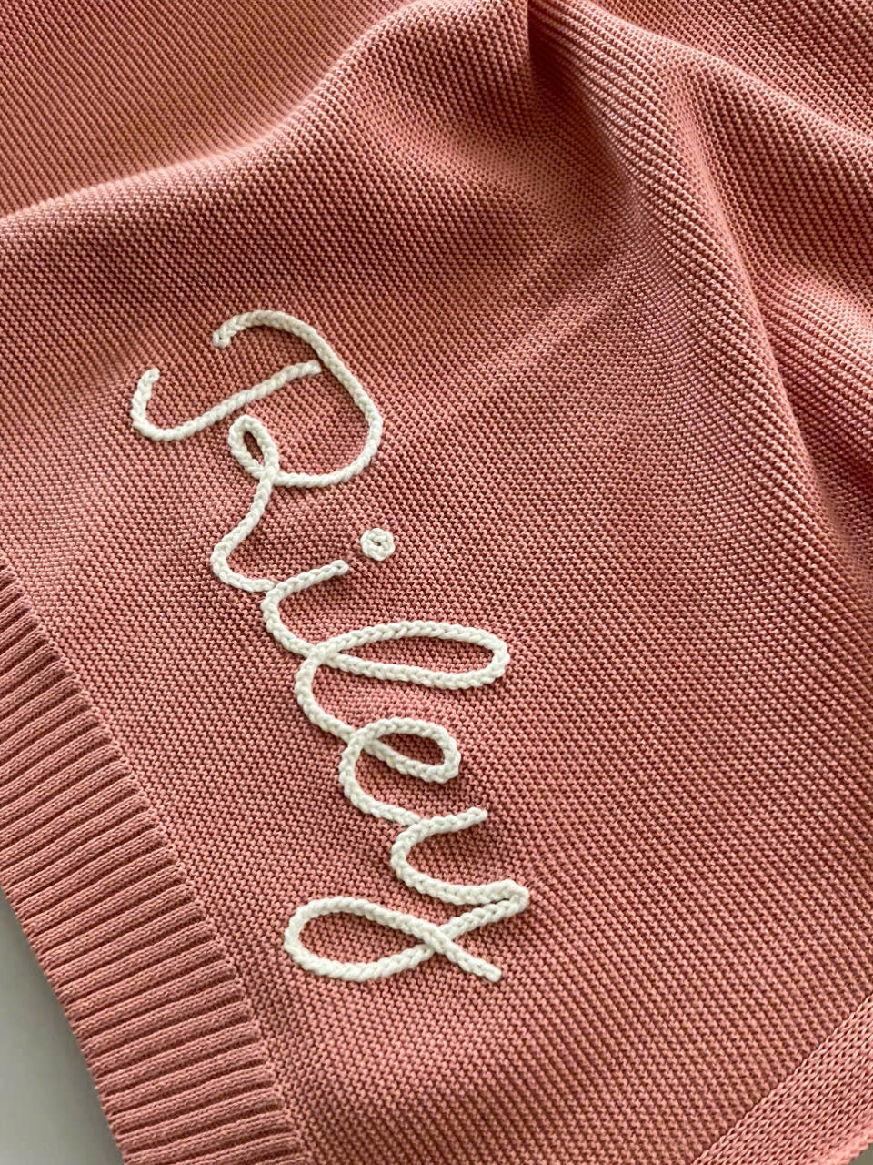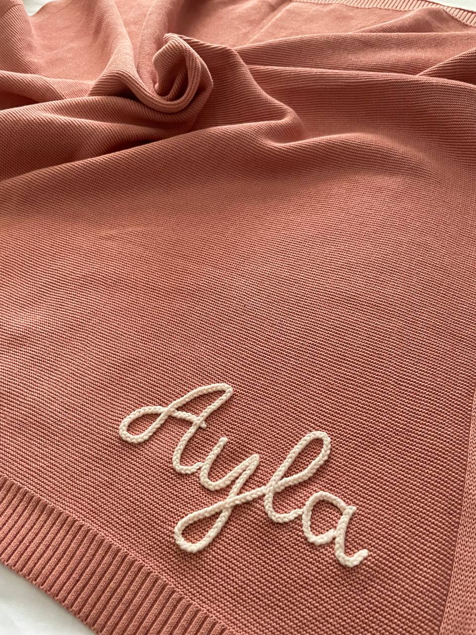 ✔ Personalized Hand Embroidered Baby Blanket with our signature writing, embroidered on the bottom right of the blanket.