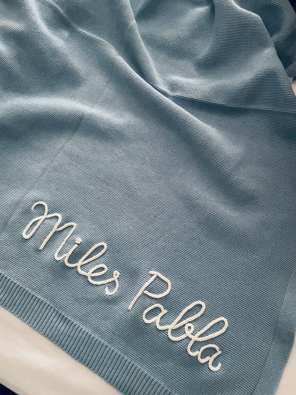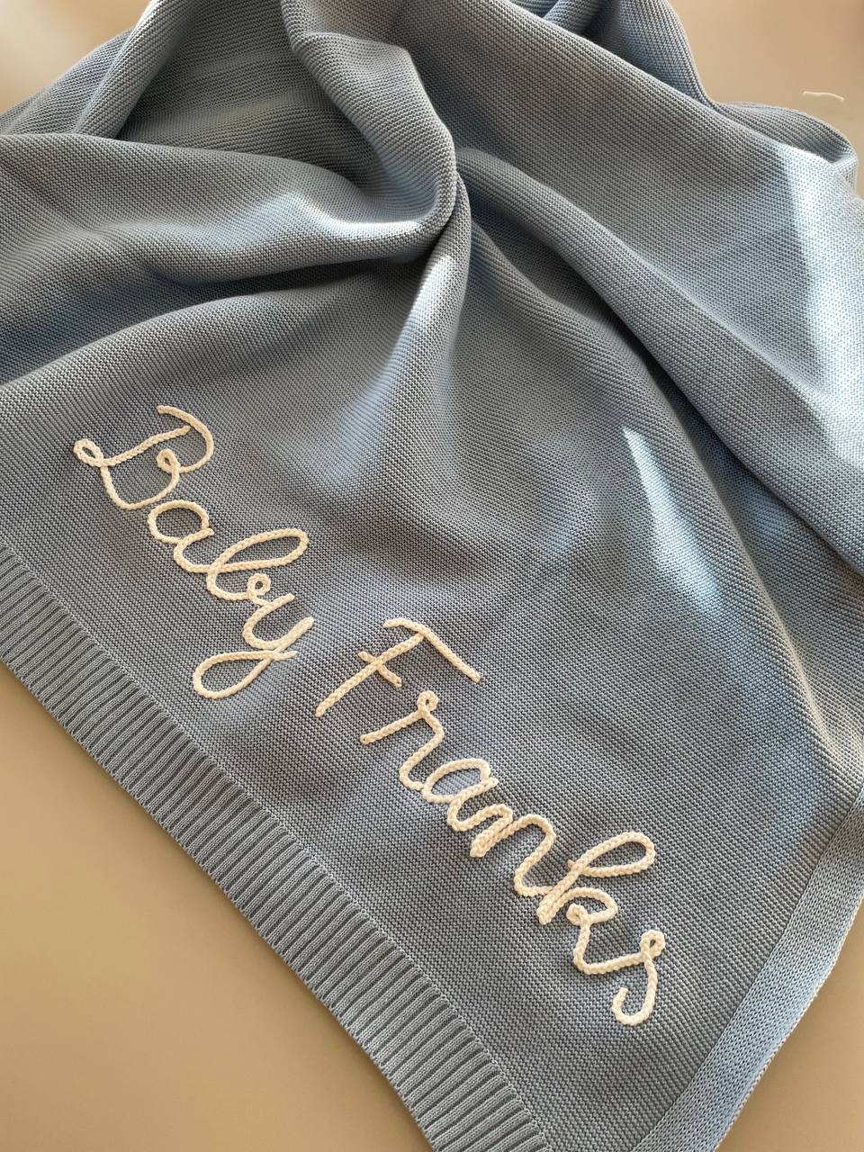 ✔ Personalized Hand Embroidered Baby Blanket with our signature writing, embroidered on the bottom right of the blanket.