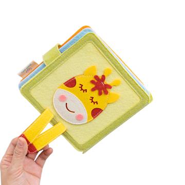 The Mini Giraffe Quiet Book is designed with babies and young toddlers in mind, this book is made mainly from felt but also contains some cotton and a zipper for your little one to explore textures