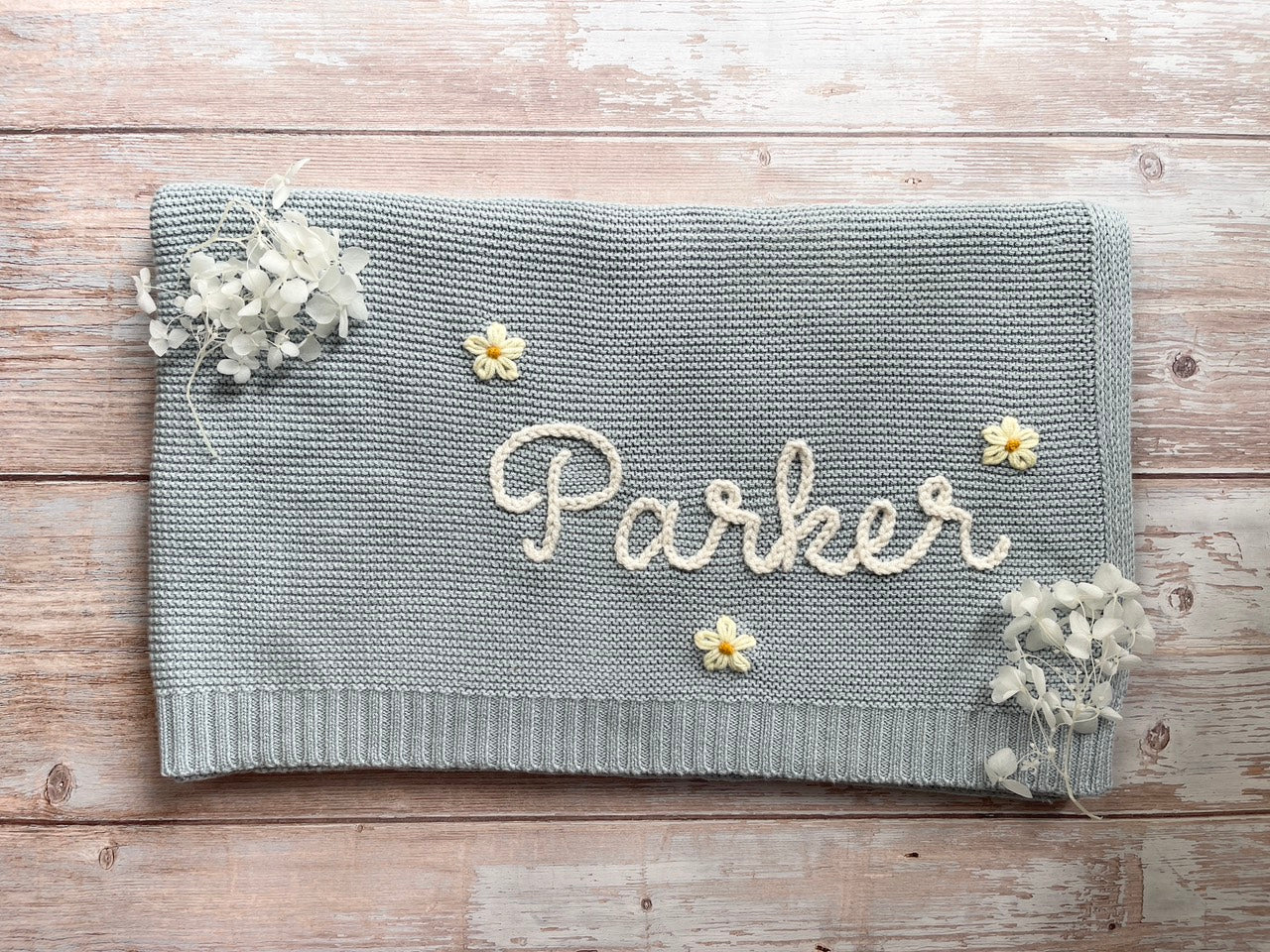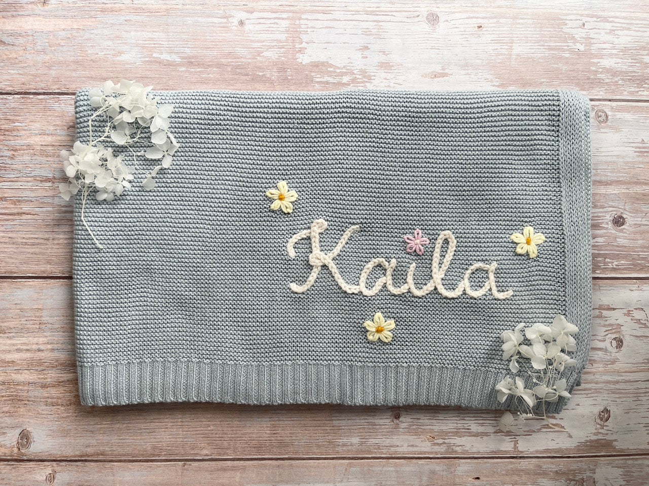 ✔ Personalized Hand Embroidered Baby Blanket with our signature writing, embroidered on the bottom right of the blanket.