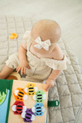 This quiet book or busy book as they are otherwise know is handmade and designed to start your little one on their learning journey while providing some quiet playtime without the flashing lights and loud noises associated with so many other children's toys.